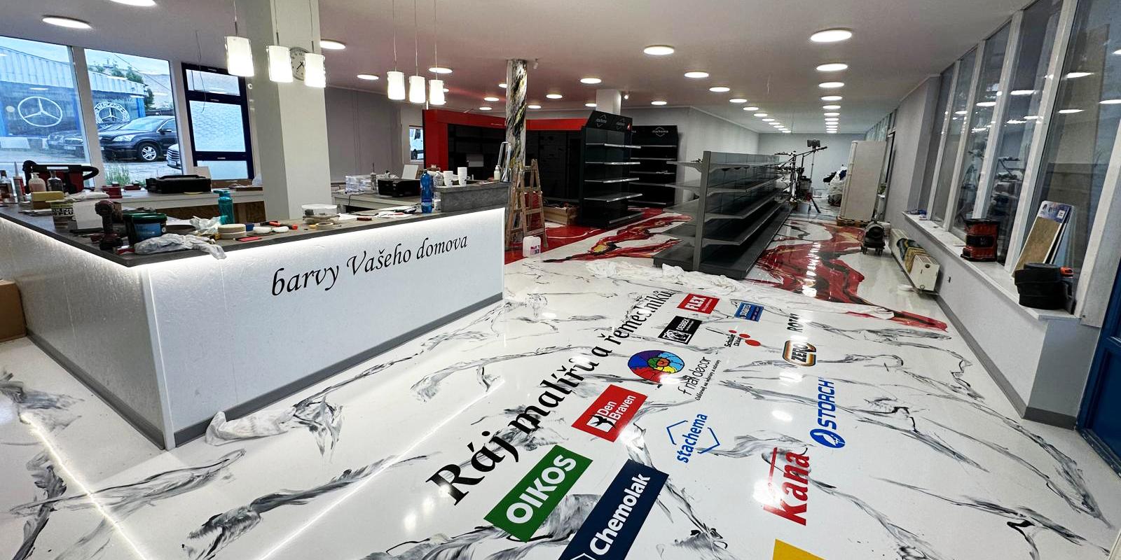 Praktická ukázka litých epoxidových podlah v prodejně Final Decor