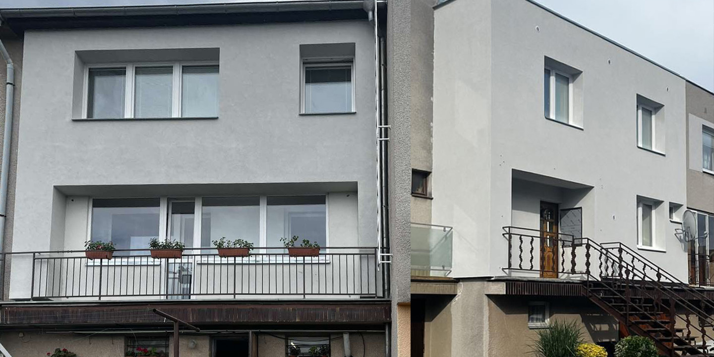 Řadový rodinný dům ve Světlé nad Sázavou prošel částečnou rekonstrukcí fasády, která zvýšila jeho estetickou hodnotu a zároveň jej lépe chrání před nepříznivými vlivy počasí. Nová omítka v šedém odstínu skvěle ladí s původním přízemím domu i okolními domy se staršími fasádami. Citlivě zapadá do celkové architektury ulice.