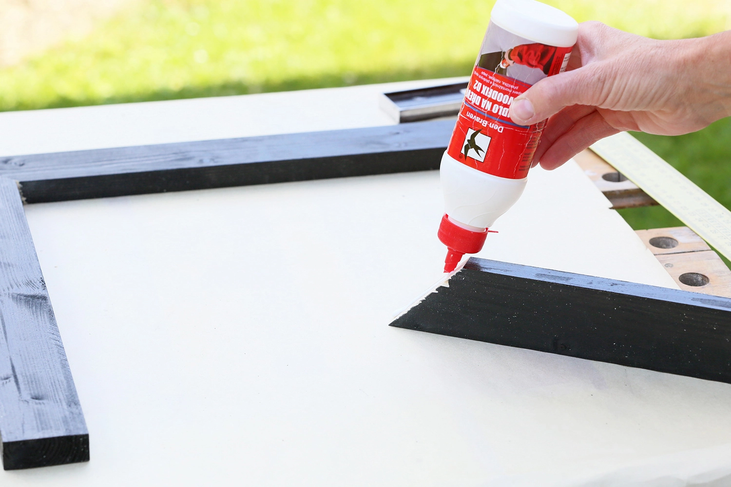 Latě si rozložíme do požadované sestavy. Ty části, které budeme lepit, necháváme nenatřené, aby lepidlo dobře přilnulo.