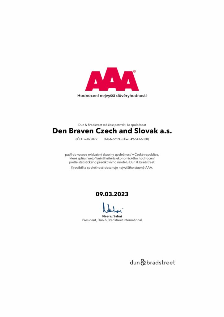 Více informací o ocenění AAA Dun & Bradstreet naleznete na oficiálních stránkách.