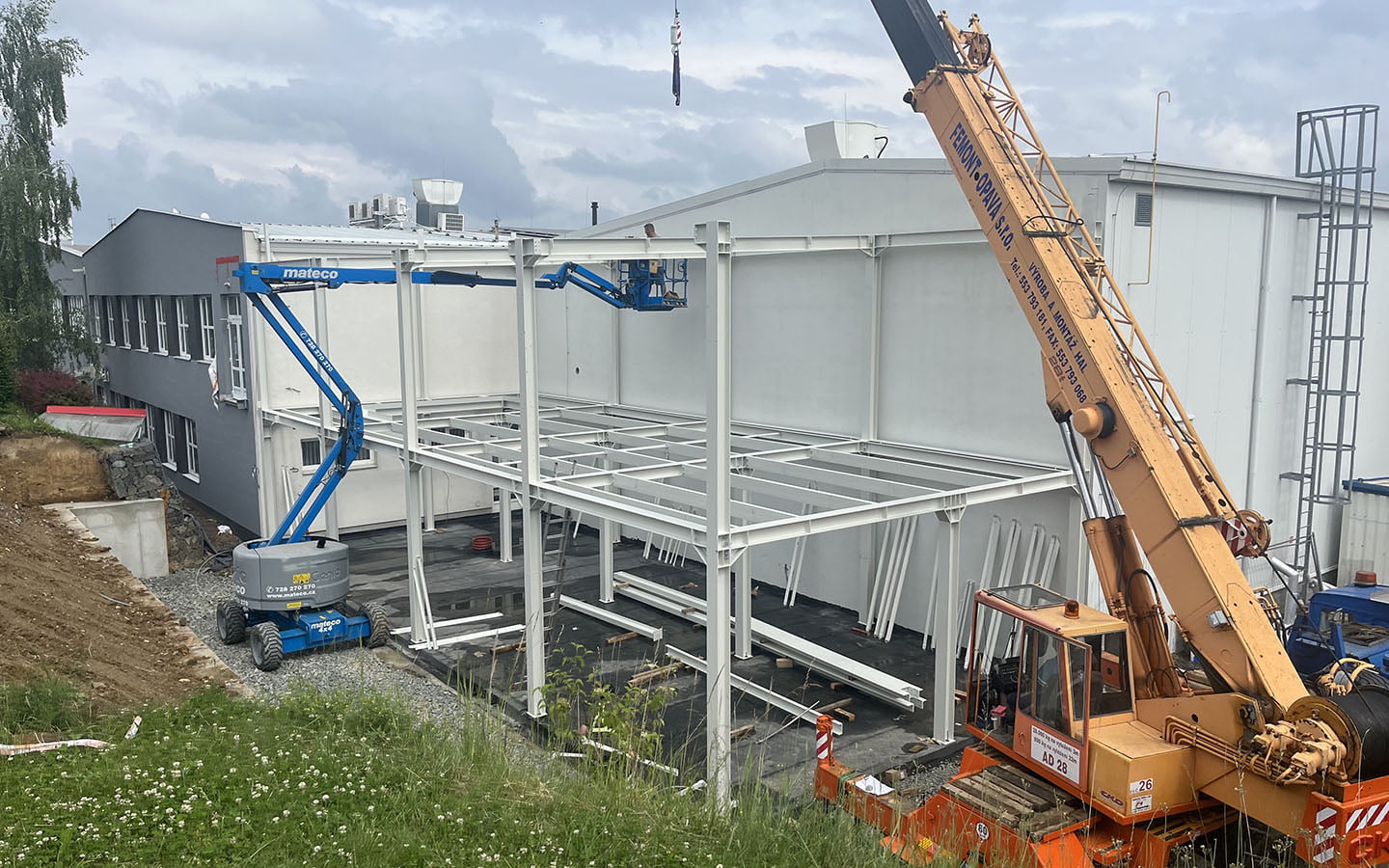 V jarních měsících jsme zahájili novou výstavbu rozšíření administrativy v areálu sídla společnosti v Úvalně. Rozšířená administrativní budova bude mít dvě nadzemní patra s celkovou podlahovou plochou 322 m2. V ní se plánují moderní kanceláře spolu se zasedací místností. Tuto skutečnost podtrhuje také naplánovaná terasa, která může sloužit k odpočinku i pracovním záležitostem.