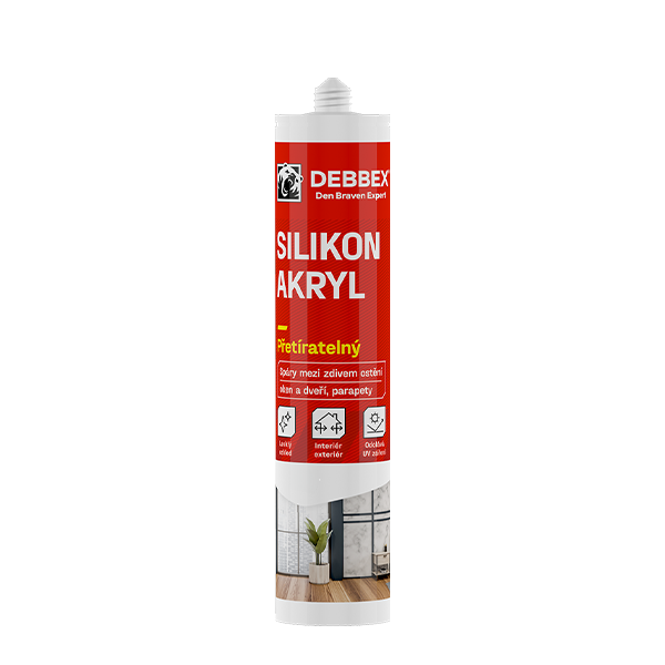 Pro interiéry. Opravy trhlin a prasklin v omítce, zdivu, dřevu, betonu. Tmelení spojovacích spár mezi rámy oken, dveří a zdivem. Tmelení okenních parapetů, spár mezi schodištěm a zdivem. Tmelení titan-zinkových parapetů a zdiva. Silikon akrylový tmel je v transparentní verzi při aplikaci bílý a během schnutí se stává transparentním.