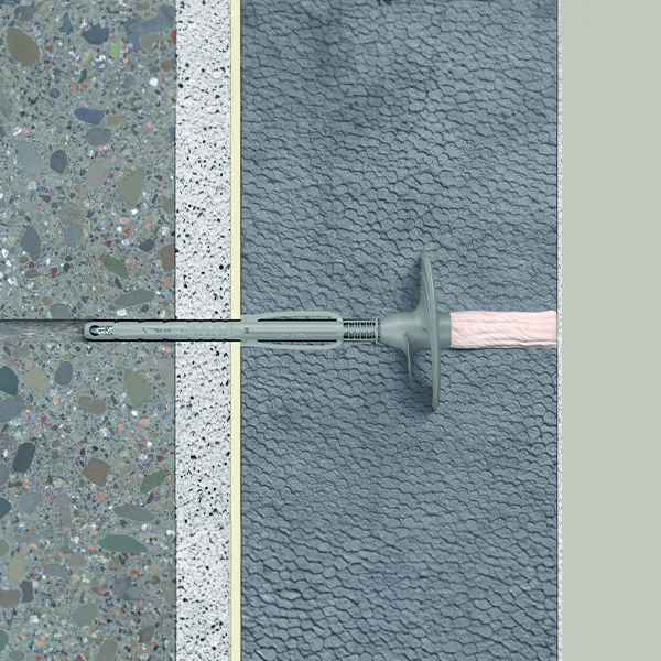 Ideální hmoždinka pro upevnění izolantů tloušťky 100-400 mm s vyšší pevností v tlaku, např. desek z expandovaného polystyrenu. Evropské technické schválení umožňuje použití hmoždinky do betonu, zdiva z plných i děrovaných cihel, pórobetonu i betonu s lehčeným kamenivem (A, B, C, D i E). Hmoždinka má speciální konstrukci, která mj. obsahuje galvanicky pozinkovaný šroub se speciálním stoupáním optimalizovaným k samozářeznému talířku. Kotva je usazena hluboko do izolantu, takže nevytváří tepelné mosty. Tyto hmoždinky jsou ve 3 velikostech a vždy pro polystyren 100-400 mm liší se pouze šířkou nenosné vrstvy 0-10 mm, 10-30 mm a 30-60 mm.